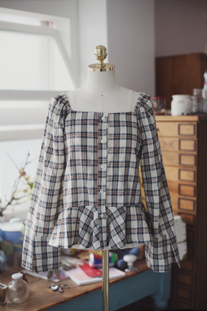 square check blouse